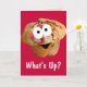 Muffin What's Up Anytime Card is a card you can send any time to let someone know you're think of them. It features a smiling muffin asking "What's Up" and inside says "Muffin much here."