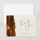Este elegante e moderno cartões de agradecimentos de casamento apresenta uma crosta e queimada cor de água laranja e borda agitada com falso brilho dourado. O texto personalizável combina as palavras "Obrigado" em um guião de manuscrito dourado e os nomes da noiva e do noivo em itálico em um fundo de marfim. Adicione a sua própria mensagem pessoal ao reverso do vazio.