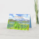 Um bom resultado do seu cartão cirúrgico de substituição de quadril decorado com uma cena de lago montanhês com plantas verdes brilhantes e arbustos com montanhas com capa de neve à distância e nuvens brancas e peludas no céu desenhadas com tinta e aquarela. Você pode editar o texto para ajustado das suas necessidades.