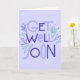 A tipografia roxa e azul moderna "Fique bem em breve". Escreva o seu dentro de mensagens personalizado.