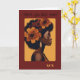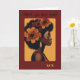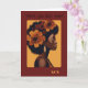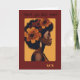 Cartão de dia das mães único com a face de uma linda mulher em um fundo marrom. Ela tem flores laranjas no seu cabelo afro e brincos boho. Na frente, você pode ver o espaço de texto onde você pode editar seus próprios nomes ou texto de sua preferência .. "Eu te amo, etc ..") Isso pode ser facilmente editado.