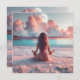 Cartão Mulher Bonita Meditando na Coberta da Praia