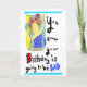 Cartão de aniversário engraçado mostrando uma porta-voz secando o cabelo.