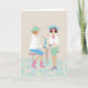 Isto tem uma imagem da mulher dois que conversa sobre uma bebida em um café. Este seria um notecard agradável a usar-se para escrever a um amigo e para convidá-los para fora para o almoço, o café ou o chá ou para permanecer apenas no toque.