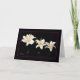 . Multiple lilies and vases on a black background are used to create this striking still-life card.