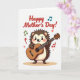 This card features a cute, spiky-backed little creature with rosy cheeks and a wide, open-mouthed smile as it strums an acoustic guitar, as if serenading someone it adores ❤️. Its bright eyes and forward-leaning posture suggest a friendly, affectionate performance, like a sweet song shared just for Mom. The creature is colored in warm browns and soft creams, with small paws wrapped around the neck and body of a rich reddish-brown guitar. Near the top, the words “Happy Mother’s Day!” appear in red lettering, arcing above the character so the greeting is the first thing you notice. Around the scene, scattered music notes float in olive green, teal, and deep red, adding motion like the melody is drifting through the air. Small red heart shapes mingle with the notes, hinting at tender closeness without needing any extra words 🌼. Everything sits on a plain white background that keeps the focus on the character and the floating details. The top greeting is red, and the notes and hearts are spaced around the smiling guitarist in green, teal, and red accents.