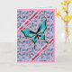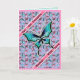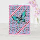 This aqua and pink Mother's Day card bears IconDoIt's original, fun, energetic Art Deco inspired turquoise butterfly design on a raspberry pink & baby blue pattern background, plus a tongue-in-cheek message on front & customizable greeting inside.