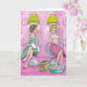 um cartão na moda cor-de-rosa com duas raparigas num salão de beleza