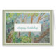 Uma bela pintura de árvores e uma trilha florestal com uma mensagem de aniversário quente para trilhas felizes para o próximo ano.