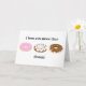 Mande uma risada para o seu amado com este cartão de saudação de Dia de os namorados giro e engraçado "Eu te amo mais do que rosquinhas". Personalize o dentro com o nome do destinatário. A mensagem diz "Caras Rosquinhas, quero dizer, NOME, Feliz dia de os namorados".