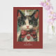 Cartão Namorados Whimsical Painterly Cat com Coração Verm