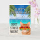 Divulgue risadas, charme felino e alegria de aniversário com este cartão de cumprimentos. Com uma foto de um gato laranja de tabby usando óculos de sol e relaxando na praia. A maneira perfeita de trazer alegria para o dia especial de alguém. A frase de efeito engraçada e temática de gato "don't stress meowt" adiciona uma camada extra de entretenimento, tornando este cartão uma escolha de destaque para aqueles que apreciam uma boa risada. O cartão tem um lado em branco que permite adicionar uma mensagem personalizada. É a combinação perfeita de humor, criatividade e celebração. Compre o seu hoje e prepare-se para tornar o aniversário de alguém em uma ocasião inesquecível, repleta de risadas e felicidade.