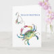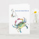 Este cartão de Natal em aquarela com tema de praia apresenta uma réplica da minha pintura original do caranguejo azul e luzes de Natal em um fundo branco crocante. As palavras "Seas and Greetings" estão em tipografia serifada em azul. O interior está em branco para você adicionar seu cumprimento personalizado. Para ver mais cartões de Natal de praia sem fotos de Victoria Grigaliunas visite www.zazzle.com/dotellabelle