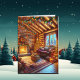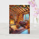 Cartão Natal aconchegante e caloroso em cabana de madeira