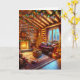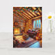 Cartão Natal aconchegante em cabana de madeira e lareira