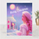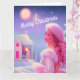 Cartão Natal Alegre Fofo Elegante Rosa Feminino