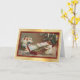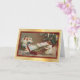 A frente desta placa de Cartões de natal apresenta uma imagem antiga de uma garotinha tocando um velho xilofone com dois anjos como coro. Ao fundo está a árvore de Natal da família. A imagem é colocada sobre um fundo de gradiente dourado claro, perfundido, e é bordada em vermelho escuro com uma fina linha dourada. A parte superior do dentro da placa corresponde ao vermelho de Feriado sólido. A parte inferior é branca, com campos de texto personalizados para sua própria mensagem e assinatura. Celebre o Natal à moda antiga com esta bela carta mostrando uma imagem de dias passados.