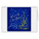 Linda cena de árvore de Natal azul, disparada por flocos de neve. Presente perfeito para o inverno.