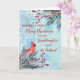 Cartão de Natal para neta e marido com folhagem aquarela, um cardeal e padrão de neve aquarela e verso atencioso.