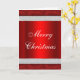 Um cartão de Natal vermelho festivo com uma borda na parte superior e inferior de veludo vermelho e pelo branco, semelhante a um traje de Papai Noel. Apresenta o texto: Feliz Natal na frente (que pode ser facilmente personalizado para o que for preferido, ou apenas deixado como está). No interior está a saudação, 'Saudações de Fim de Ano' que também pode ser personalizada.