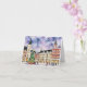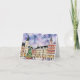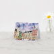 Este cartão de feriado apresenta um retrato em aquarela de Madrid durante o Natal.