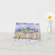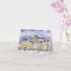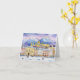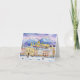 Este cartão de feriado apresenta um retrato de cor d'água de Salzburgo durante o Natal.