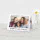 Um cartão de saudação dobrado de Natal moderno que mostra sua foto na frente e "Feliz feriado", "Que seus dias sejam Feliz + Brilho" e seu nome em uma simples tipografia. No dentro, adicione duas fotos adicionais e uma saudação personalizada.