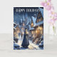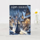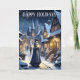 O Natal na cena da vila é um cartão de boas-vindas de Feliz Natal. Moradores de uma pequena aldeia histórica que caminhava pelas ruas da noite guiadas pela luz da vela, talvez indo de porta em porta com as notícias de Natal. Este cartão faz lembrar cristãos pacíficos de anos passados. O dentro versículo lê "Que Seu Coração Seja Feliz E Brilhante Esta Época De Natal".