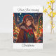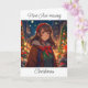 Menina de anime bonito do lado de fora num cartão de Natal de inverno.