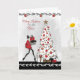 Cartão de Natal moderno para uma querida sobrinha, apresentando uma dama elegante vestida de vermelho com saltos altos carregando presentes em direção a uma bela árvore de Natal branca decorada. Gráficos cedidos por Crave Designs.