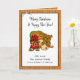 Cartão de Natal Personalizado com foto da família no interior. Você também pode personalizar seu próprio cumprimento de férias no interior do cartão! A frente do cartão tem gráficos em estilo country e western com um chapéu de cowboy, botas, ursinho de pelúcia, poinsettia em cores festivas de Natal.