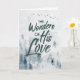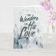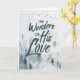 Um fundo aquoso de árvores com uma aparência nebulosa e gentil de cinza azul, acentua a palavra arte de Maravilhas de Seu Amor. Um veado solitário está em primeiro plano, com pássaros voando no céu. Belo cartão de Natal cristão religioso que se destacará na sua delicada simplicidade. Cria-se que o texto do cobrir se pareça com a mão escrita com uma escova de aquarela que lhe dá um aspecto solto e parelhante.