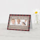 Xadrez de búfalo vermelho e preto e cartão de Natal com foto em juta marrom rústica. O texto diz, "Feliz Natal Tio e Tia". Personalizado com 3 das suas fotos e texto favoritos. Como o texto é personalizável, não importa quais sejam os nomes do seu tio e da sua tia, você pode personalizar este cartão especialmente para eles. Adicione suas fotos na frente. E se você quiser adicionar fotos e texto dentro do cartão, você também pode fazer isso.