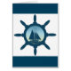 Design náutica com barco à vela e decoração das rodas em fundo branco