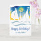 Personalize este cartão de saudação náutico legal para o seu marinheiro (ou qualquer pessoa) ... Aniversário, Aniversário de Casamento, Dia dos Pais ou qualquer ocasião especial. Design geométrico abstrato com silhuetas de veleiros nas ondas do oceano azul com lua cheia.