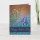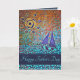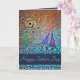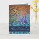 Modelo de cartão do Dia dos Pais com foto dentro. Um barco veleja sob um céu metálico. O sol brilha forte, destacando os azuis vibrantes da água. A saudação interna diz: Obrigado por ser um pai maravilhoso. Você está nas minhas lembranças favoritas. Por favor, atualize o modelo do ano atual no verso. É fácil alterar qualquer uma das palavras neste cartão bonito para torná-lo seu.