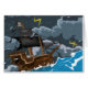 Navio pirata em tempestade. Tempestade de trovão e Relâmpago. Navio de madeira em tempestade. Nave pirata da ARRR!