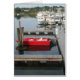 Barco vermelho brilhante refletindo maravilhosamente na água, ancorado em segurança para a noite. Personalize seus próprios cartões de saudação e selos! Obrigado pelas suas compras!