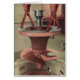 Ilustração vintage de negócios da indústria de manufatura apresentando 'Energia Suspensa'. Uma turbina hidráulica está sendo baixada em uma barragem hidrelétrica. Uma turbina hidráulica é uma máquina rotativa que converte energia cinética e energia potencial da água em trabalho mecânico. As turbinas hidráulicas foram desenvolvidas no século XIX e foram amplamente utilizadas para energia industrial antes das redes elétricas. Agora, elas são usadas principalmente para geração de energia elétrica.