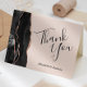 Este elegante e moderno cartões de agradecimentos de casamento apresenta uma coloração aquosa preta, borda agitada, aparada com falso brilho de rosa. O texto personalizável combina as palavras "Obrigado" no script de escrita manual preto de slate e os nomes da noiva e do noivo em itálico em um fundo rosa-claro.