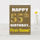 Este simples design de cartão de saudação com tema de aniversário apresenta um desejo de aniversário quente como "HAPPY 55th BIRTHDAY, First-Name!" na frente, em texto a negrito sobre um fundo castanho. O número de aniversário tem uma aparência falsa e imitada de cor dourada. O nome na frente pode ser personalizado. O dentro apresenta uma mensagem de aniversário que pode ser personalizada. Um cartão de boas-vindas como este poderia ser uma maneira divertida de fazer votos de aniversário a alguém que comemora seus cinquenta anos. [~Z0000281]
