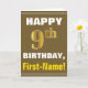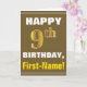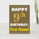 Cartão Negrito, Castanho, Faux Dourado 9º Aniversário com