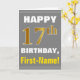 Cartão Negrito, Cinza, Faux Dourado 17.º Aniversário com