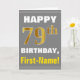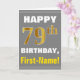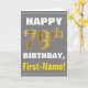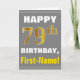 Cartão Negrito, Cinza, Faux Dourado 79. Aniversário com C