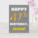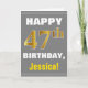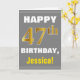 Cartão Negrito, Cinzas, Faux Dourado 47º Aniversário com