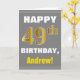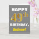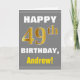 Cartão Negrito, Cinzas, Faux Dourado 49º Aniversário com