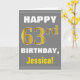 Cartão Negrito, Cinzas, Faux Dourado 63º Aniversário com