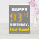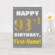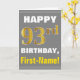 Cartão Negrito, Cinzas, Faux Dourado 93º Aniversário com
