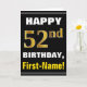 Cartão Negrito, Preto, Faux Dourado 52º Aniversário com C