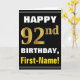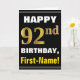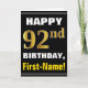 Cartão Negrito, Preto, Faux Dourado 92º Aniversário com C